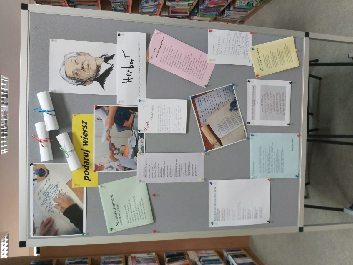 W bibliotece czeka na Was papeteria przekazana nam przez Fundację im. Zbigniewa Herberta oraz mnóstwo tomików poezji, z których możecie wybrać swój najpiękniejszy wiersz.