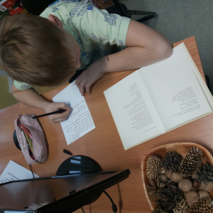 Dzieciaki niezwykle nas zaskoczyły swoim entuzjazmem z jakim czytały poezję, szukały odpowiedniego wiersza do podarowania. Znalazła się nawet osoba, która wyrecytowała swój ulubiony wiersz. To było świetne spotkanie. Swoje wiersze młodzież podaruje nauczycielom z okazji Mikołajek. Czyż to nie wspaniały pomysł?