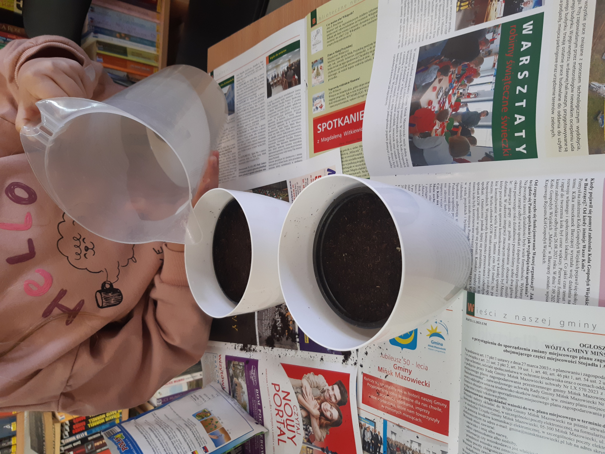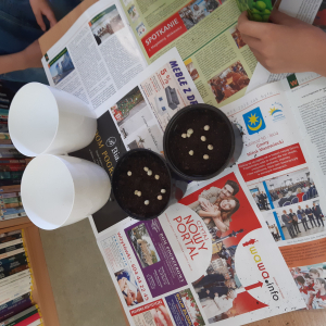 W drugiej części spotkania odbyły się warsztaty ogrodnicze. Rozpoczęliśmy je od przeczytania opowiadania “Groszki” opracowanego przez Francoise Malnuit, które stanowi ciekawą formę wprowadzenia dzieci w świat roślin i ich rozwoju. Następnie każdy zasiał swoje nasionko i zobaczymy, co z tego wyrośnie…