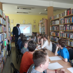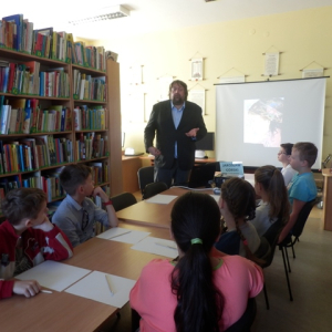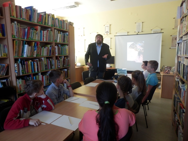 W ostatnim dniu Tygodnia Bibliotek, czyli 15 maja, uczniowie klas IV i V ze szkoły podstawowej w Stojadłach uczestniczyli w warsztatach literackich przygotowanych przez Jarosława Górskiego.