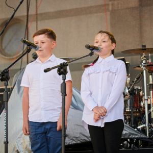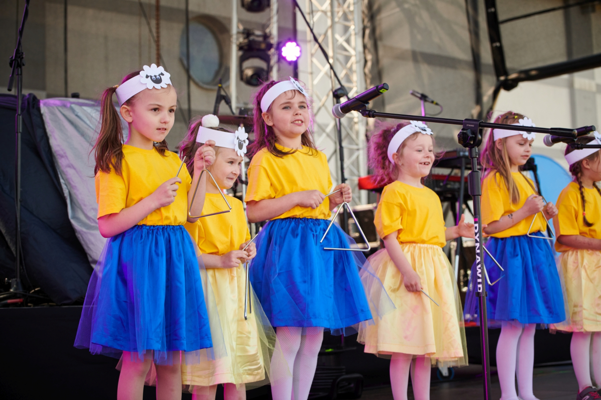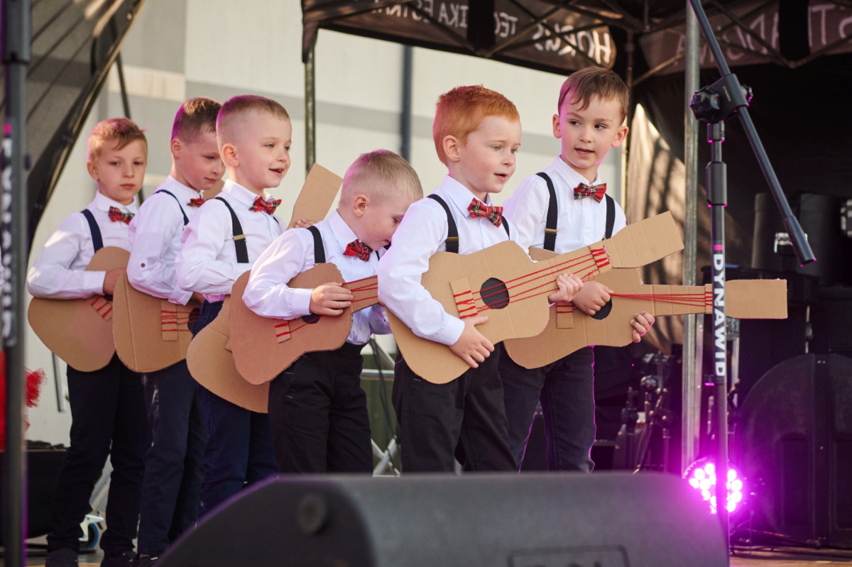 Pierwszymi artystami, jakich mogliśmy podziwiać, były dzieci ze szkół podstawowych oraz przedszkoli naszej gminy. Uczniowie zaprezentowali cały wachlarz talentów. Były porywające publiczność tańce, były występy wokalne oraz prezentacja uzdolnionej skrzypaczki. To niezwykłe jak wiele genialnych i twórczych dzieci mamy wokół nas.