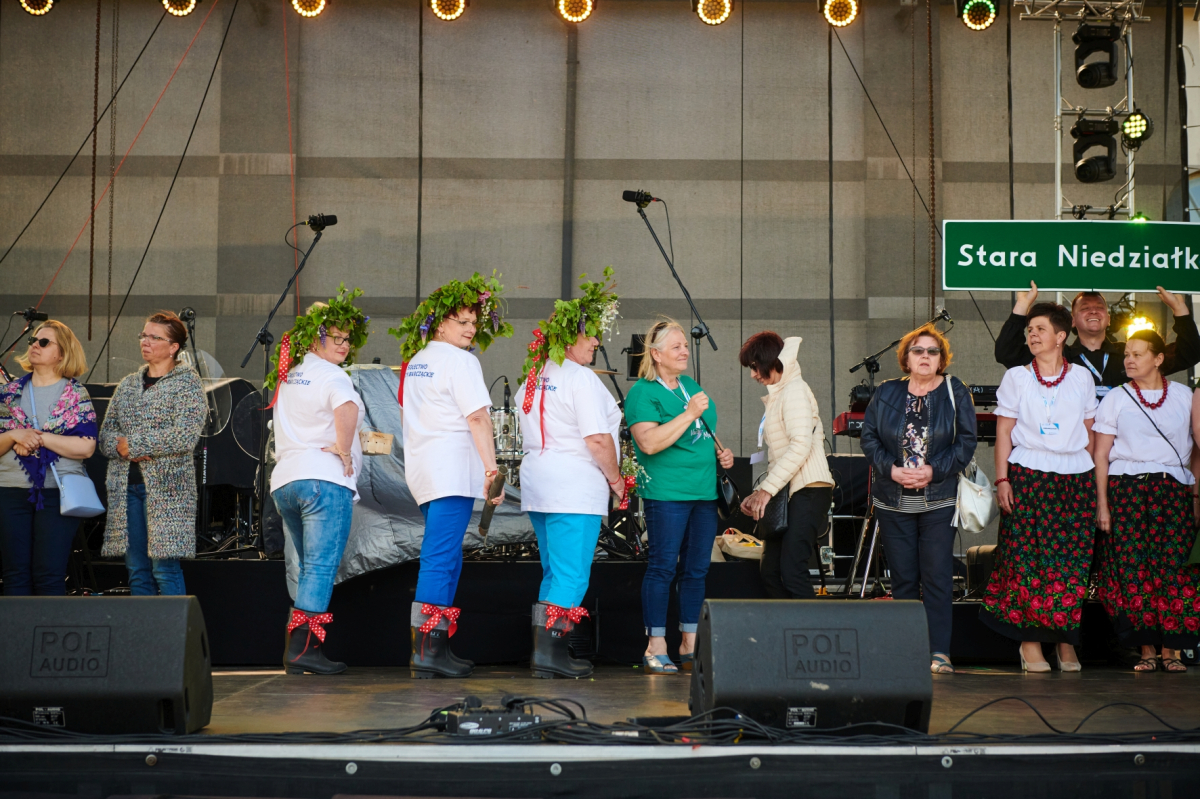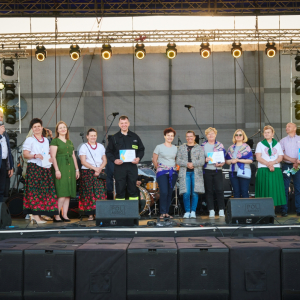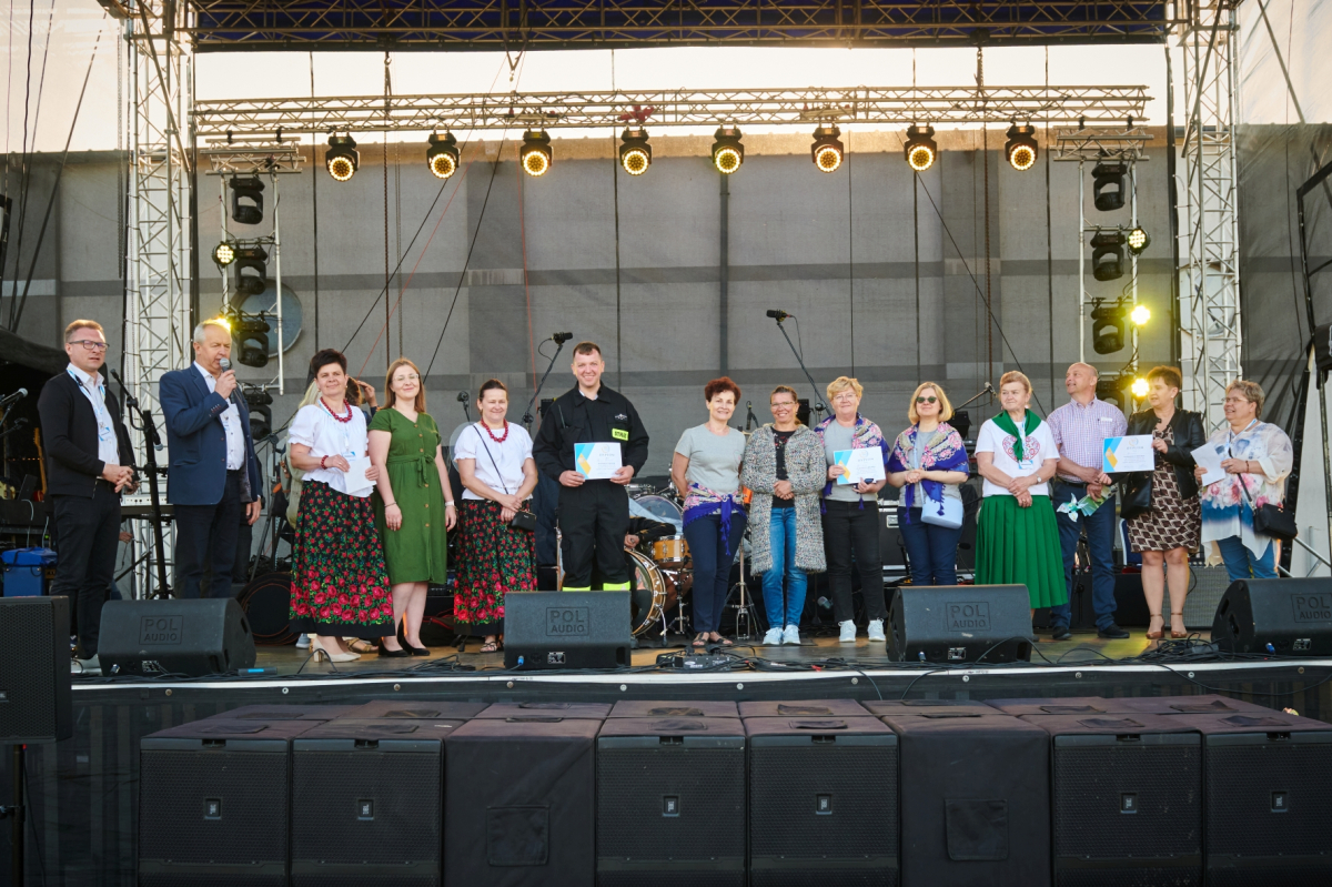 Następnie na scenie powitaliśmy Koło Gospodyń Wiejskich z Zamienia, które przygotowało piękne ludowe utwory. Panie przygotowały wspaniałe widowisko, które wprowadziło wszystkich w ludową atmosferę. Klimat tradycyjny i niepowtarzalny utrzymany został przez artystów, którzy swoim występem uświetnili kolejne kwadranse imprezy. To zespół lokalny Mazowszaki, którego członkiem jest Zygmunt Drewicz, prowadzący na co dzień Muzeum Wsi Stojadła „Drewiczówka”. To niezapomniane, wręcz magiczne doznania jakim nas ugoszczono podczas występów lokalnych twórców.