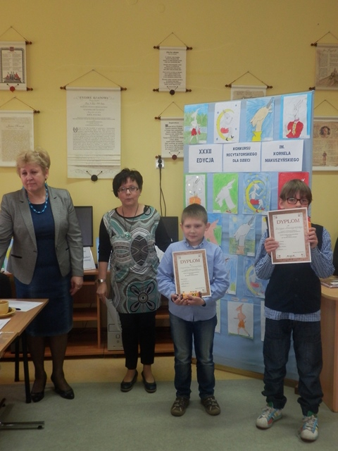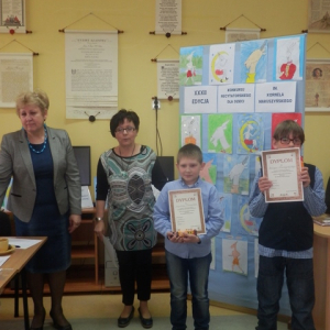 Nagrody książkowe i nominację do etapu powiatowego otrzymali : w grupie młodszej – Szymon Wieczorek z Brzózego oraz w grupie starszej – Borys Mierzejewski z Marianki.