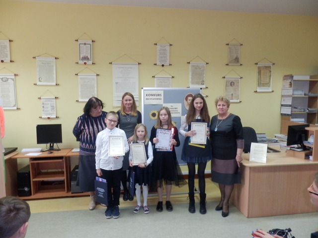 W dniu 8 listopada 2017 r. w Bibliotece Publicznej Gminy Mińsk Mazowiecki z siedzibą w Stojadłach odbył się etap gminny. Do recytacji stanęli uczniowie szkół podstawowych oraz klas gimnazjalnych w terenu naszej gminy. Komisja biorąc pod uwagę dobór repertuaru, interpretację utworu, stopień pamięciowego opanowania tekstu, kulturę słowa oraz ogólny wyraz artystyczny, wyłoniła trzech reprezentantów do etapu powiatowego.