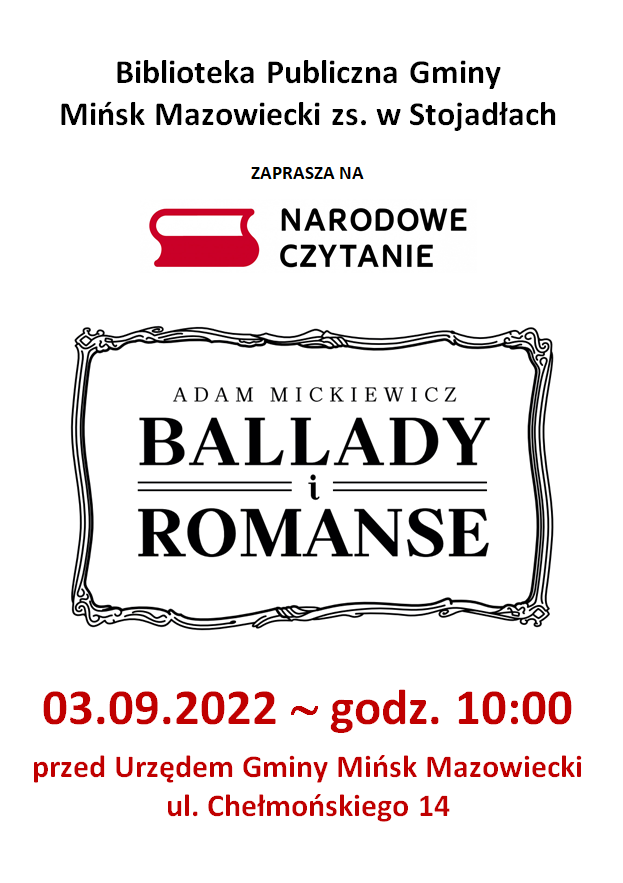 Na tegoroczną lekturę wybrano „Ballady i romanse” Adama Mickiewicza, którą zaprezentują radni gminni, pracownicy urzędu, bibliotekarze i czytelnicy.