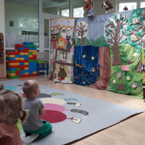 Z okazji tygodnia bibliotek zaprosiliśmy teatrzyk Arlekin do przedszkola “Akwarelka” w Nowych Osinach.