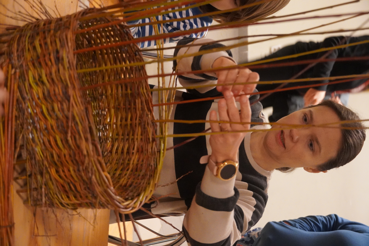 Te warsztaty to nie tylko nauka techniki. To również miło spędzony czas, opowieści o plecionkarstwie oraz odpoczynek przy pracy rąk.
