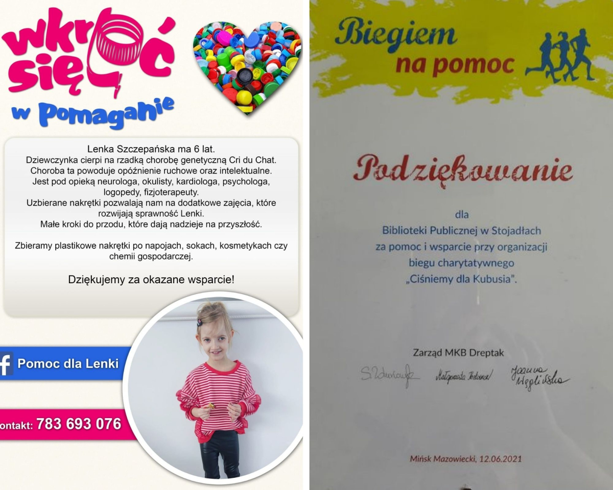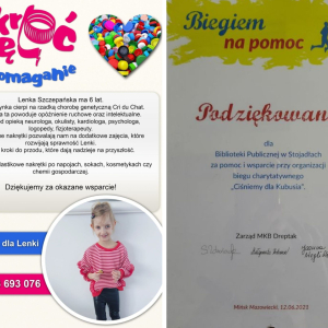 W V 2021 roku pomogliśmy organizatorom biegu charytatywnego “Ciśniemy dla Kubusia”, przekazując dwa pudełka gadżetów dla uczestników. Warto przypomnieć także o akcji kartki świąteczne. Nasi wyjątkowi i wspaniali Czytelnicy nie zawiedli i wykonali ponad 40 kart świątecznych, które otrzymali podopieczni Caritas Mińsk Mazowiecki.