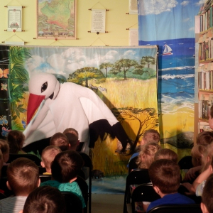Tytuł sztuki wystawionej u nas dwukrotnie to “Przygody Bociana Klekosława”. Aktorzy, pokazując przygody głównego bohatera Bociana lecącego z Afryki do Polski, wprowadzili do spektaklu elementy edukacyjne związane ze zdrowym odżywianiem oraz patriotyzmem.