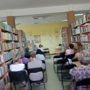 Pomysły do swoich powieści czerpie z życia. Podczas spotkania opowiedziała o kulisach swojego pisania oraz o najnowszej książce z pogranicza kryminału pod tytułem Sprzeczne sygnały. Wydała ponadto Nie licząc kota, Meandry miłości, Pójdę do jedynej, Nalewka zapomnienia i trzytomowy cykl Po sąsiedzku. Obecnie pracuje nad nową książką.