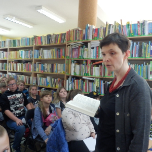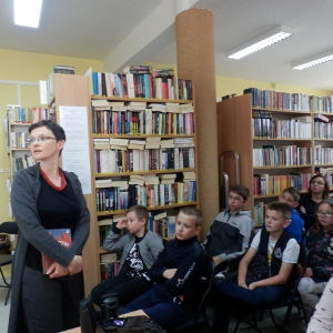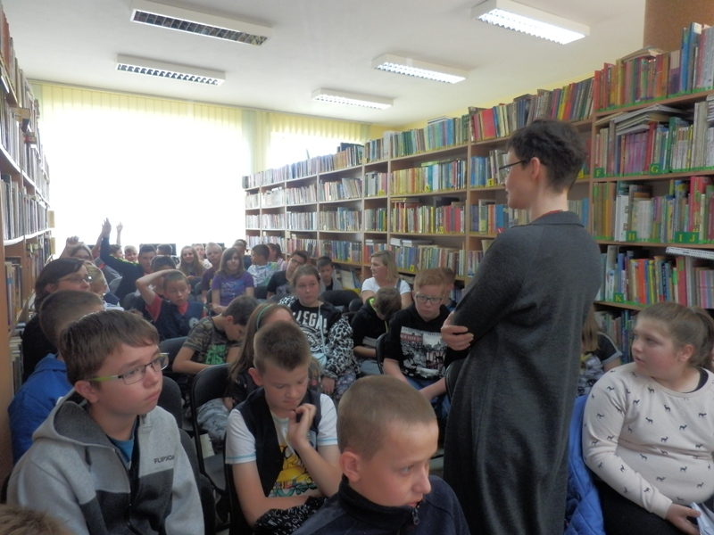 W bibliotece spotkała się z uczniami klasy IV szkoły W Mariance oraz klasy V w Stojadłach. W interesujący sposób zapoznała młodych czytelników ze swoją twórczością. Wzbudziła w nich potrzebę czytania.