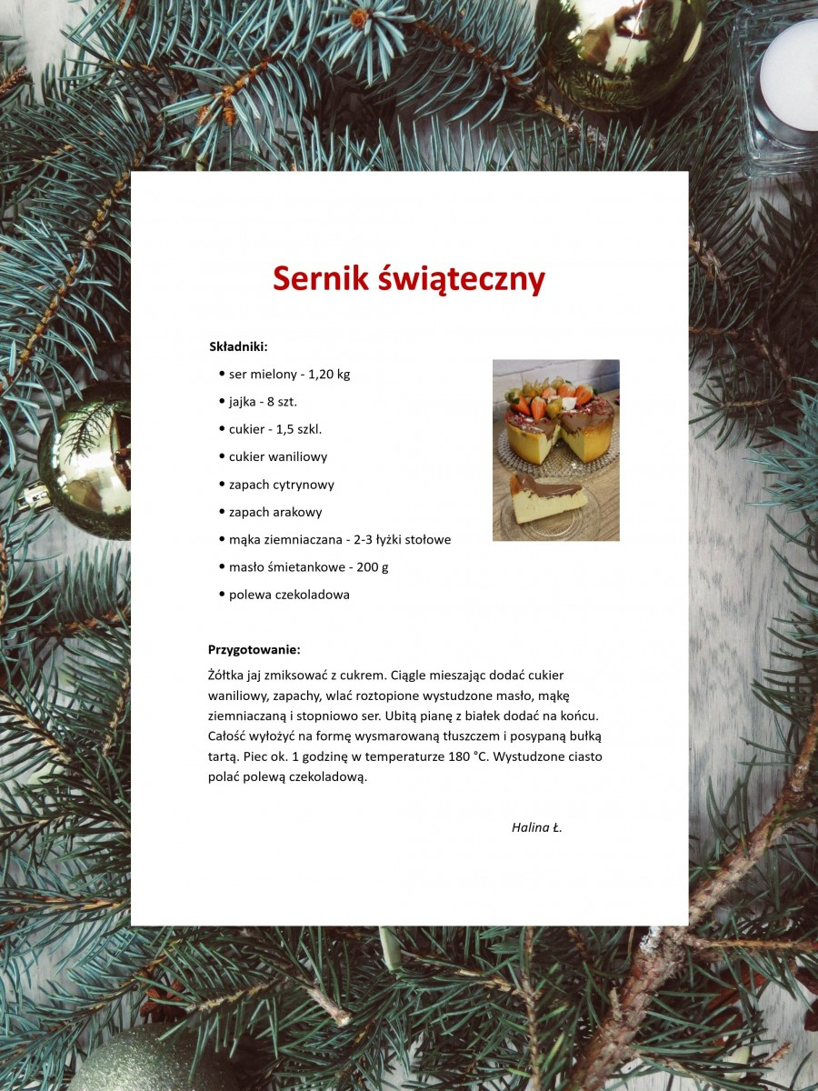 Prezentujemy świąteczne przepisy przesłane przez naszych Czytelników. Dziękujemy, że podzieliliście się z nami swoimi pewniakami. Niewątpliwie będą cenną podpowiedzią i inspiracją przy tworzeniu świątecznego menu. Smacznego!