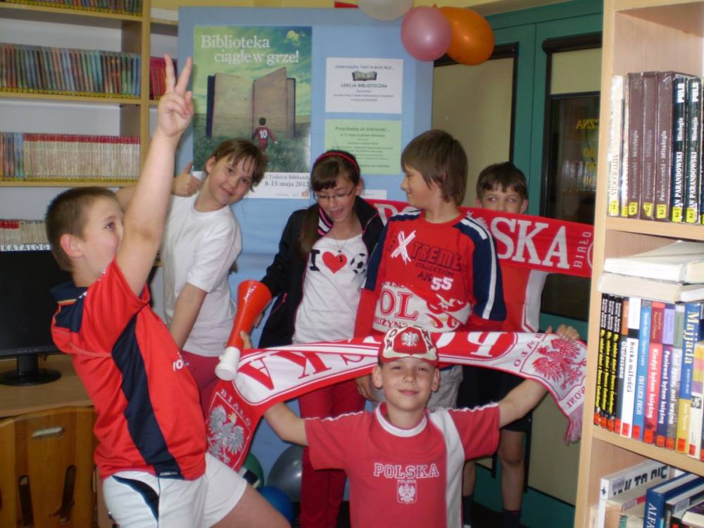 Zajęcia biblioteczne dla dzieci ze świetlicy odbyły się 11 maja, natomiast 14 maja lekcja biblioteczna dla uczniów klasy czwartej. W czasie tych spotkań dzieci poznawały zasady organizacji bibliotek, korzystania ze zbiorów, rozwiązywały krzyżówkę o książce. Nie zabrakło również prezentacji nowości wydawniczych oraz promocji książek i czasopism o sporcie a szczególnie o piłce nożnej.