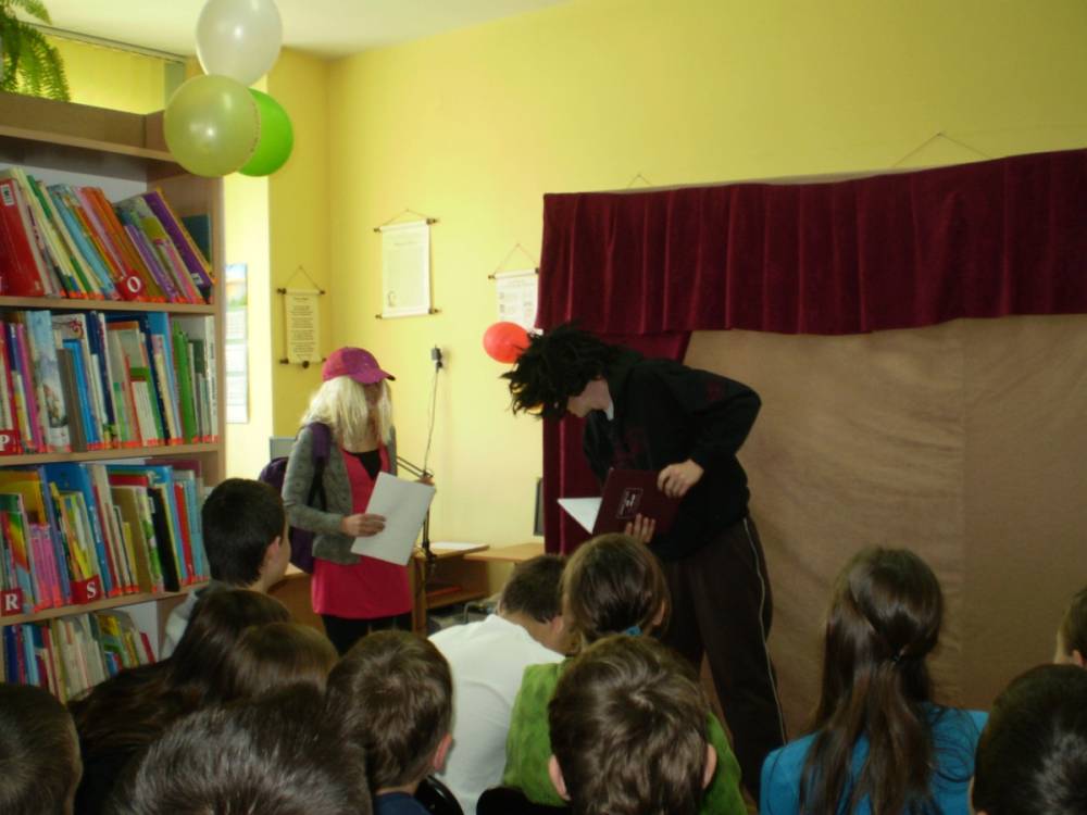 W dniu następnym czyli 9 maja biblioteka zmieniła się w scenę teatralną. Profilaktyczno-Edukacyjny Teatr dla Dzieci i Młodzieży MORALITET z Krakowa wystawił sztukę pt. Diabelski Młyn. Spektakl ukierunkowany na przeciwdziałanie uzależnieniom tj. dopalaczom, narkotykom, nikotynie alkoholowi został skierowany do uczniów klas pierwszych gimnazjalnych.