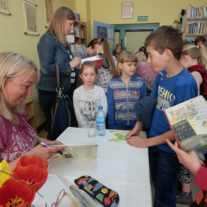 W dniu 8 maja 2013 r. w Bibliotece Publicznej Gminy Mińsk Mazowiecki z siedzibą w Stojadłach gościła Agnieszka Frączek. Pani Agnieszka jest językoznawcą, germanistką i leksykografem, wykładowcą na Uniwersytecie Warszawskim oraz autorką wielu książek dla dzieci. Podczas spotkania z młodymi czytelnikami prezentowała swoją najnowszą książkę Rany Julek! O tym Jak Julian Tuwim został poetą. Uczniowie klas trzecich ze szkół podstawowych w Hucie Mińskiej, Stojadłach i Zamieniu (ogółem 60 osób) mieli okazję poznać wiele ciekawych i zabawnych historii z życia młodego Juliana Tuwima a także zapoznać się z twórczością autorki. Mogli również nabyć książki wraz z autografem naszego gościa.