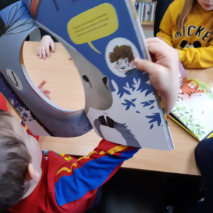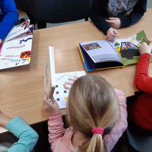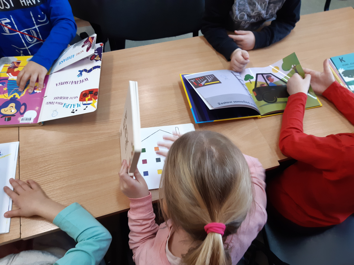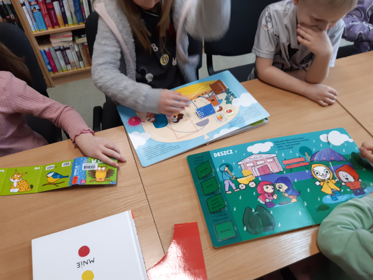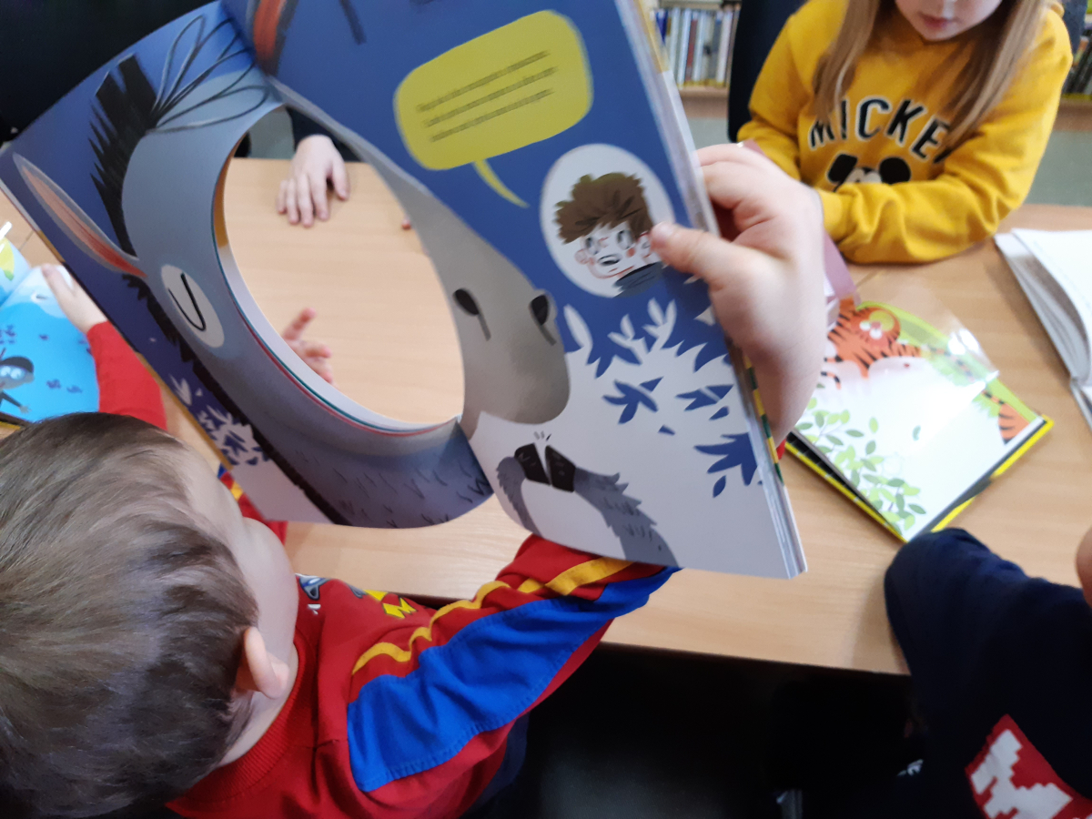 Cieszy nas bardzo fakt, że dzieci najmłodsze odwiedzają biblioteką. Choć nie potrafią jeszcze same czytać ale interesują się książką i bardzo precyzyjnie określają co je interesuje. Zadają również ciekawe pytania dotyczące biblioteki np. Kto może z niej korzystać?