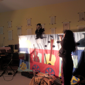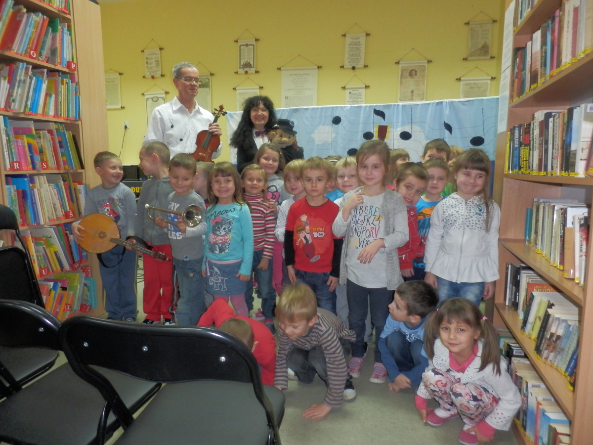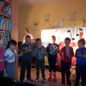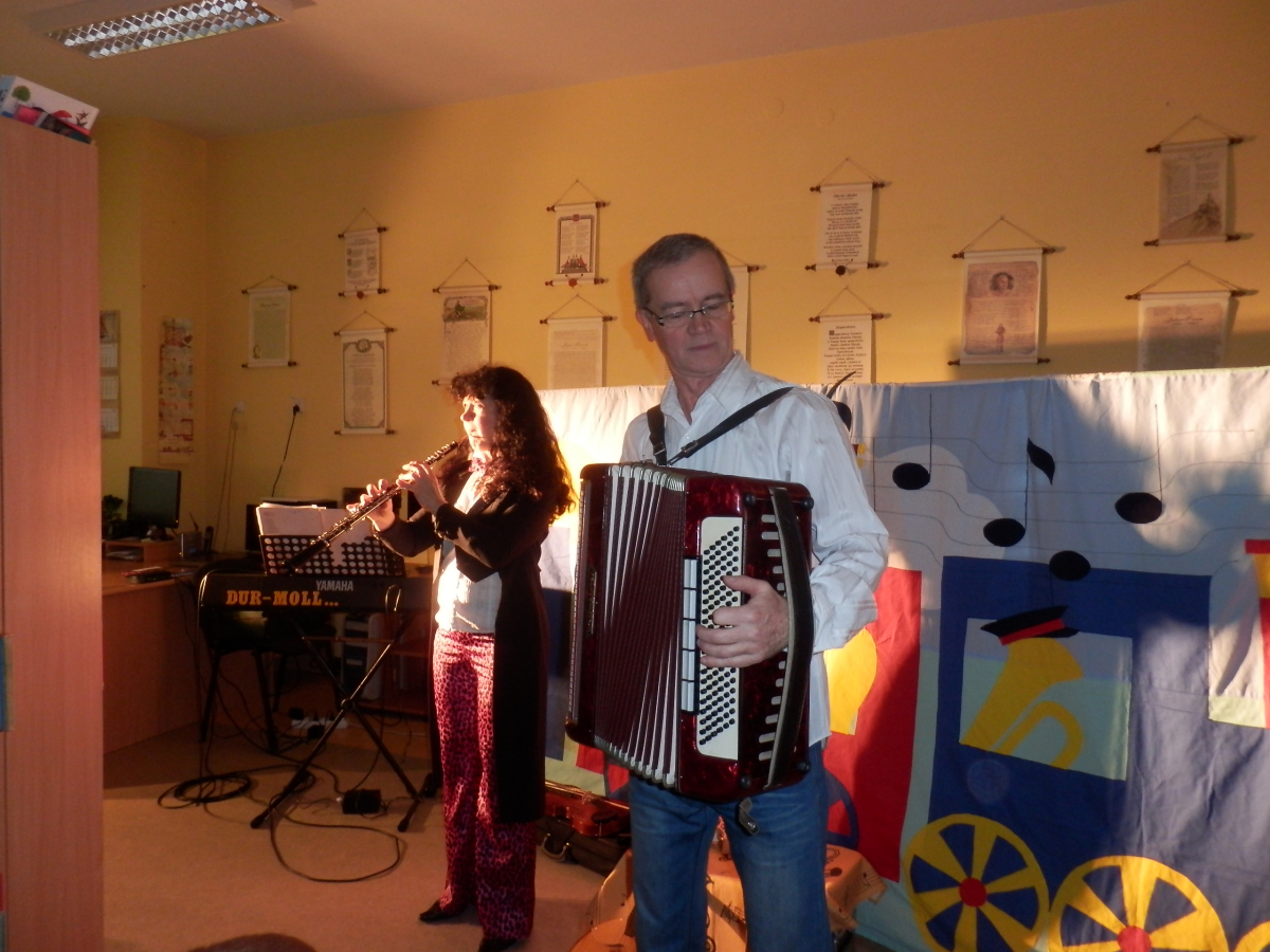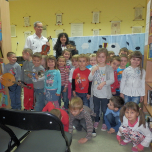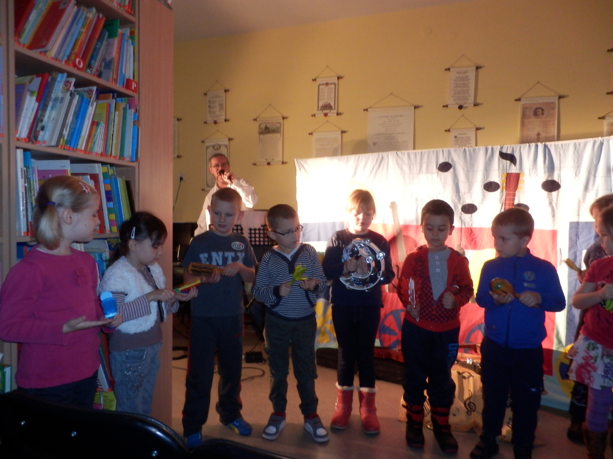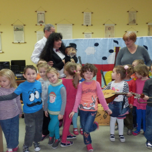 Wesoły pociąg to tytuł muzycznej sztuki teatralnej wykonanej przez aktorów Agencji Artystycznej Dur-Moll z Warszawy. Agencja istnieje od 1994 r. a jej założycielami jest małżeństwo muzyków Ewy i Czesława Matrybów. To właśnie oni, w dwóch spektaklach bawili naszych najmłodszych czytelników ze szkół w Starej Niedziałce i Stojadłach. Ogółem przedstawienie obejrzało 90 osób. A było na co popatrzeć i czego posłuchać. Dzieci, oprócz wspaniałej gry aktorów, poznały również niezwykłego dyrygenta orkiestry Stefana (lalkę) oraz wiele instrumentów muzycznych min.: obój, ksylofon, akordeon, skrzypce, keyboard, mandolinę. Poznały zasady gry w orkiestrze, strojenie instrumentów oraz bezbłędnie rozpoznały ich brzmienie. Kolejne spotkanie z aktorami agencji Dur-Moll w maju 2014 r.